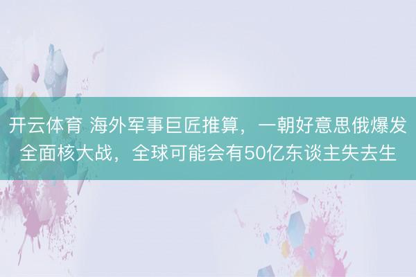 开云体育 海外军事巨匠推算,一朝好意思俄爆发全面核大战,全球可能会有50亿东谈主失去生