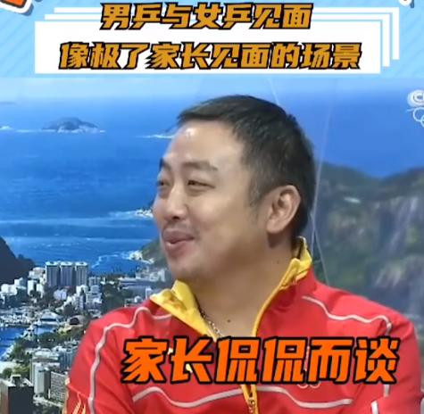 可男乒却一脸不苟说笑,反不雅女乒都是憨涩地笑着。