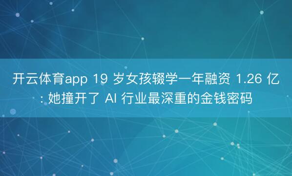 开云体育app 19 岁女孩辍学一年融资 1.26 亿: 她撞开了 AI 行业最深重的金钱密码
