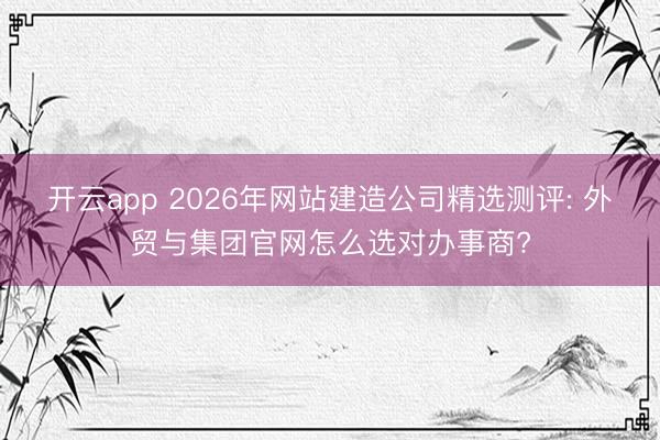 开云app 2026年网站建造公司精选测评: 外贸与集团官网怎么选对办事商?