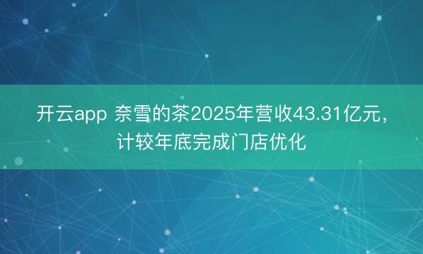 开云app 奈雪的茶2025年营收43.31亿元,计较年底完成门店优化