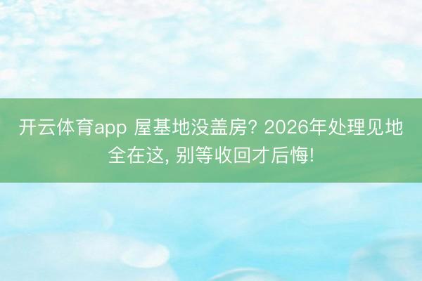 开云体育app 屋基地没盖房? 2026年处理见地全在这, 别等收回才后悔!