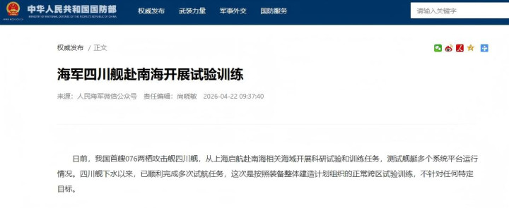 【官方发布四川舰南下的音问】