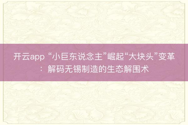 开云app “小巨东说念主”崛起“大块头”变革:解码无锡制造的生态解围术