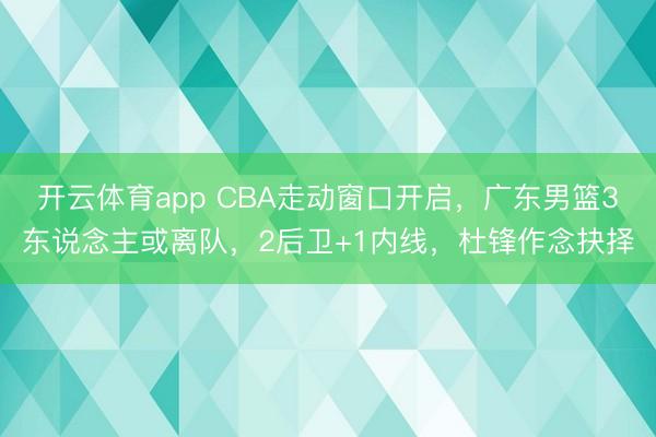 开云体育app CBA走动窗口开启,广东男篮3东说念主或离队,2后卫+1内线,杜锋作念抉择