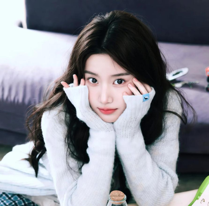 嘴角微微上扬,自带一种甜好意思的笑脸